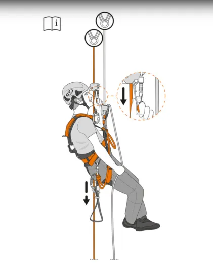 Fall arrest back up device designed for use within rope access.